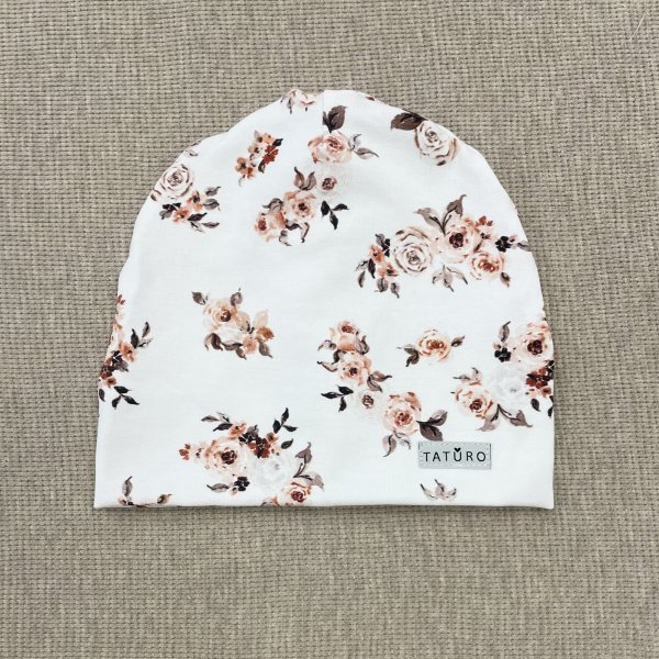 moderného vzhľadu. Jemný vzor na bielom podklade robí z detskej čiapky